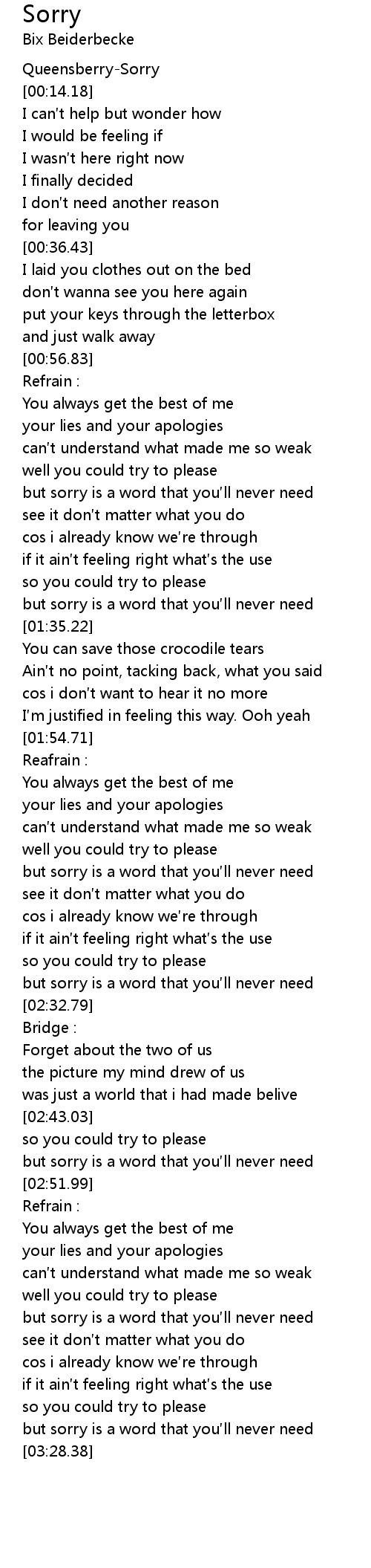 | [03:05.07] | but sorry is a word that you ll never need |
