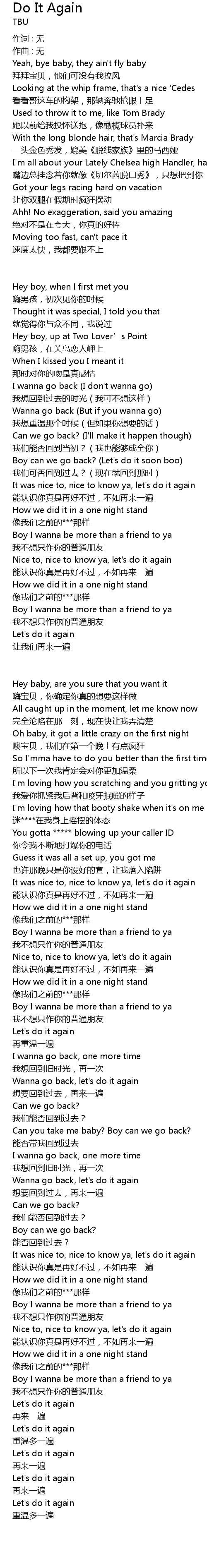 | 歌曲 | Do It Again |
