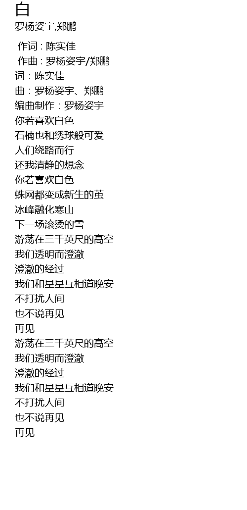 | [00:34.74] | nǐ ruò xǐ huān bái sè |