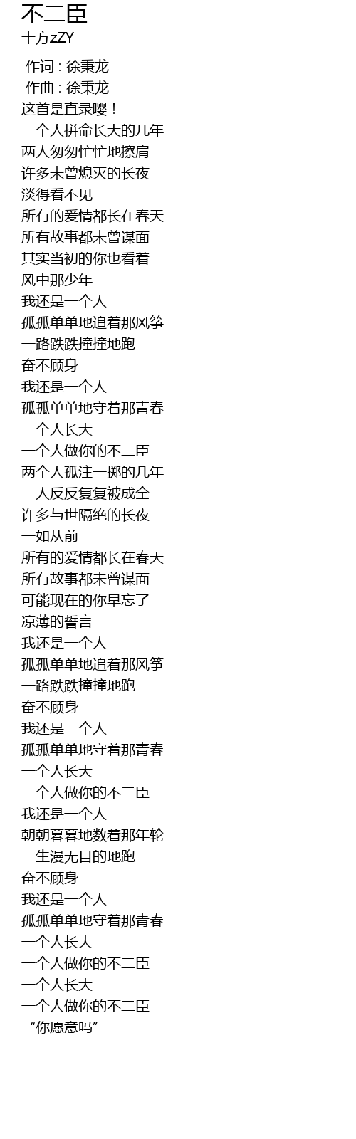 | [01:02.917] | 一个人做你的不二臣 |