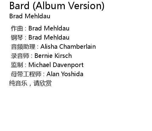 | [00:01.000] | 钢琴 : Brad Mehldau |