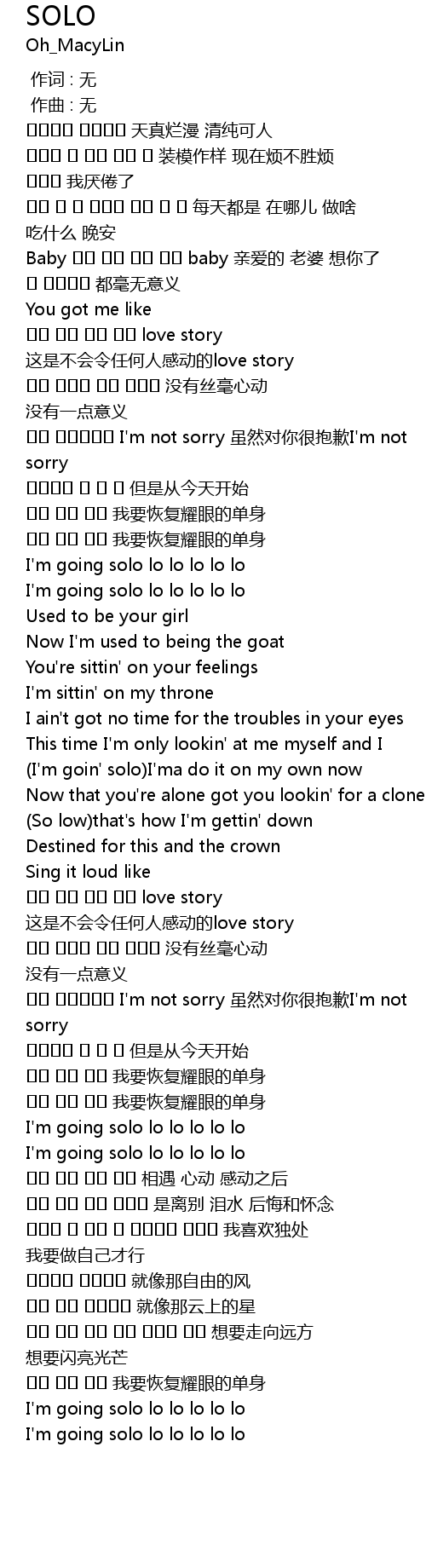 | [00:58.457] | I' m going solo lo lo lo lo lo |