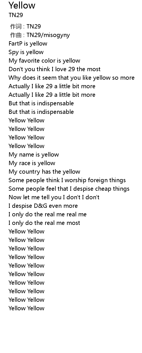 | [00:32.911] | Why does it seem that you like yellow so more |