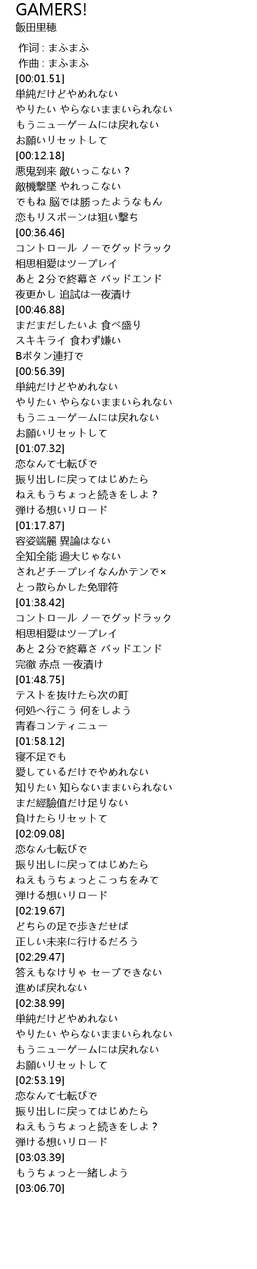| [02:29.64] | 答えもなけりゃ セーブできない |