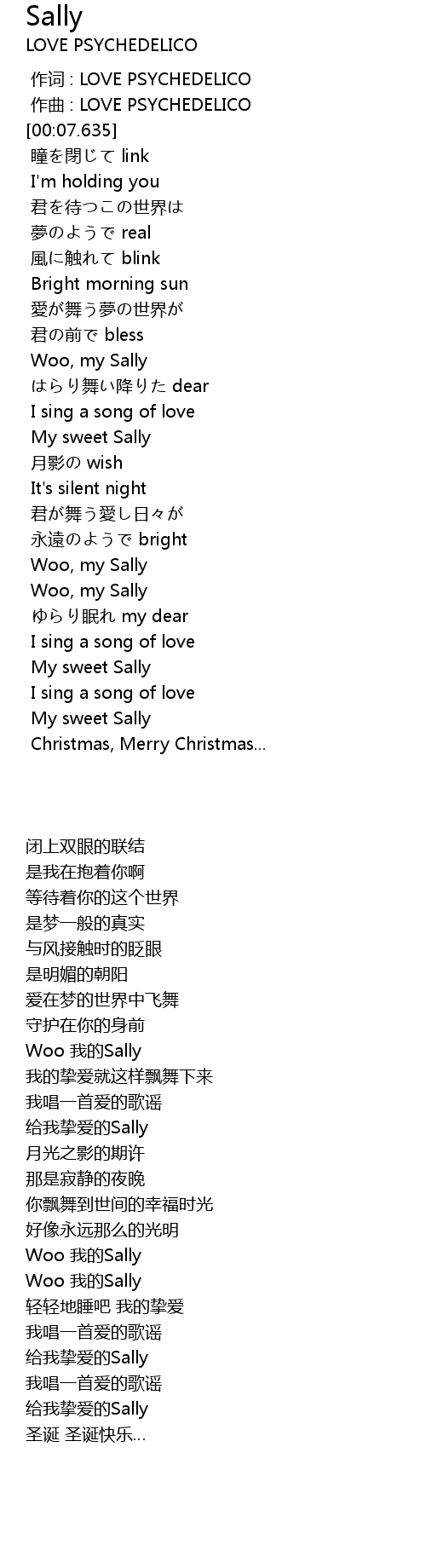 | [01:38.811] | 给我挚爱的Sally |