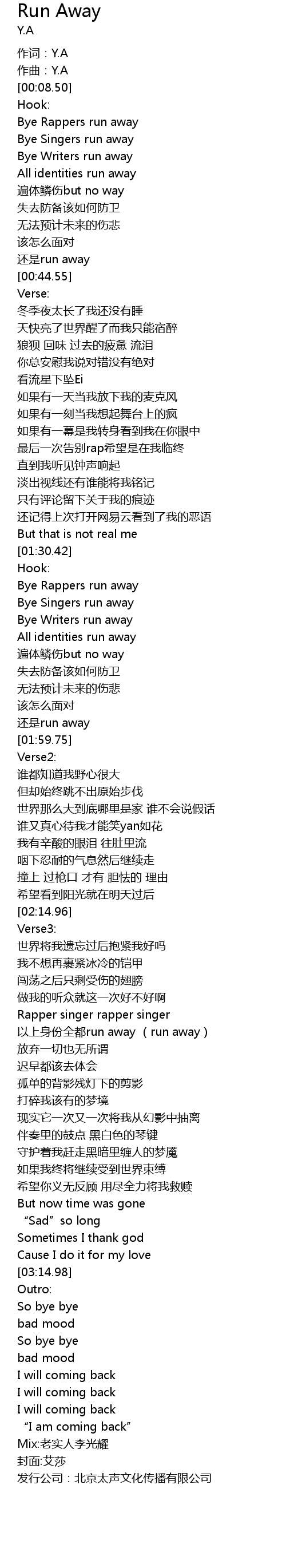 | [00:41.53] | 还是run away |