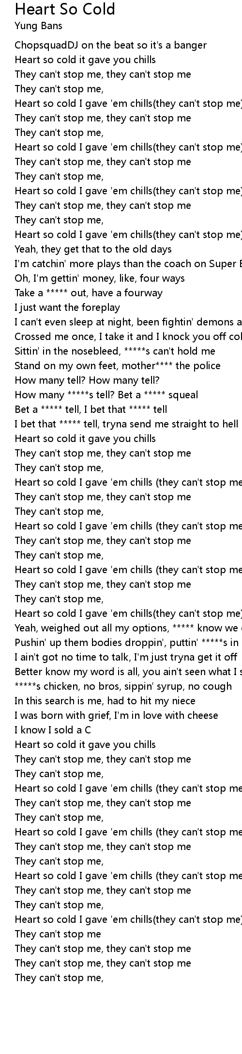| [00:34.03] | Heart so cold I gave 'em chills(they can't stop me) |