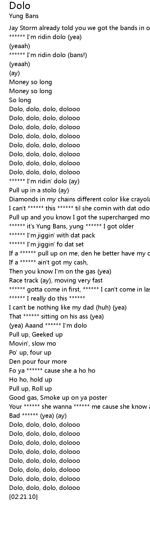 | [00:04.62] | ****** I'm ridin dolo (yea) |