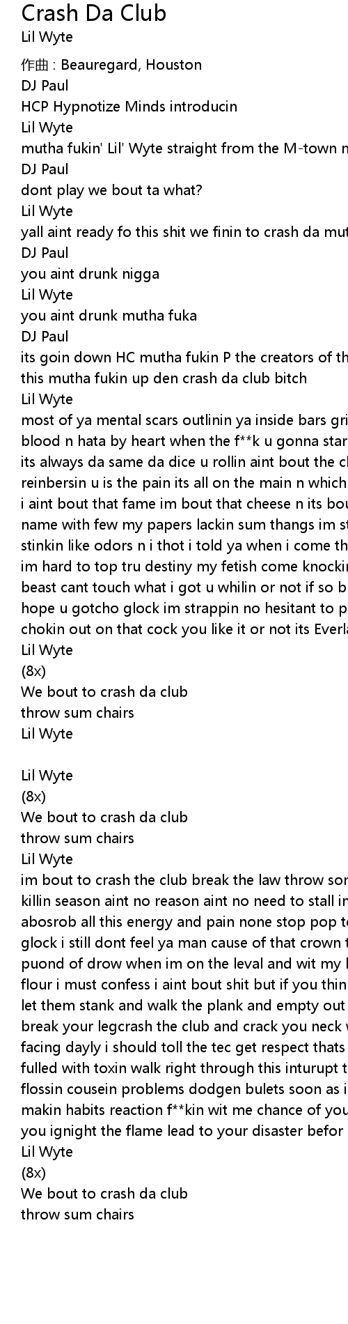 | yall aint ready fo this shit we finin to crash da mutha fukin' club dawg | |