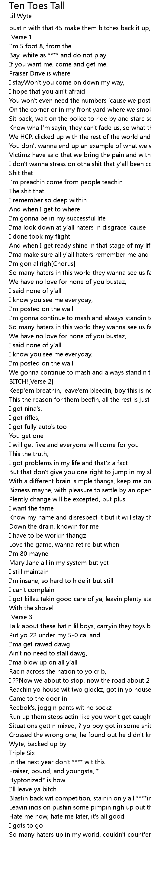 So many haters up in my world, couldn't count'em on my handz and toez[Chorus] |
