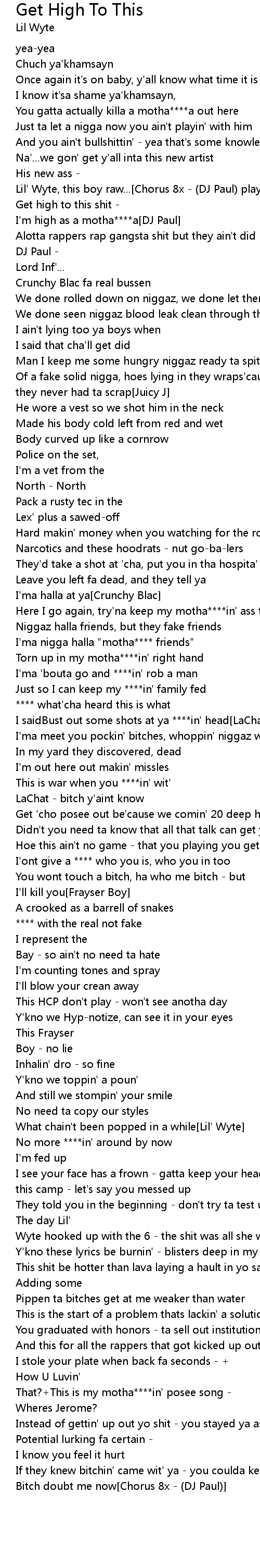 Lil' Wyte, this boy raw...[Chorus 8x - (DJ Paul) plays in the background] |