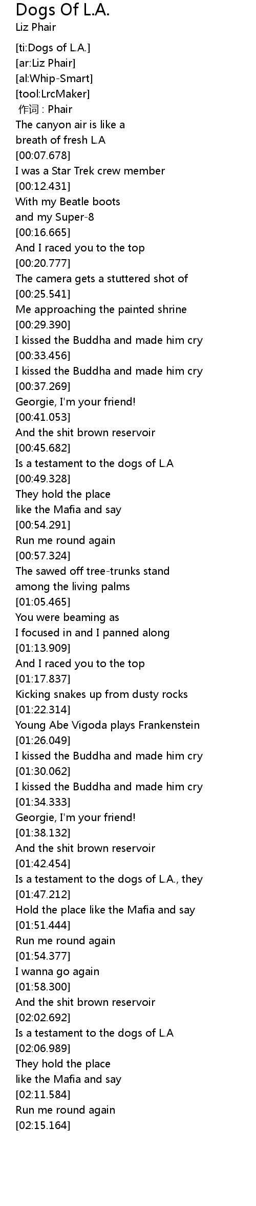 | [02:03.107] | Is a testament to the dogs of L.A |