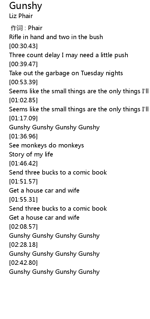 | [02:31.25] | Gunshy Gunshy Gunshy Gunshy |