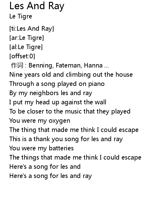 | [00:00.00] | 作词 : Benning, Fateman, Hanna ... |