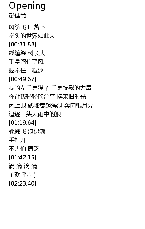 | [00:17.33] | 风筝飞 叶落下 |