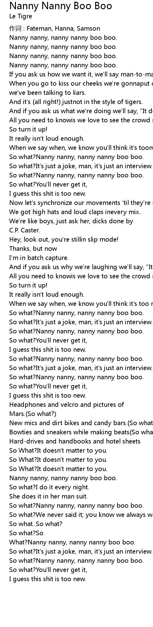 | 歌曲 | Nanny Nanny Boo Boo |