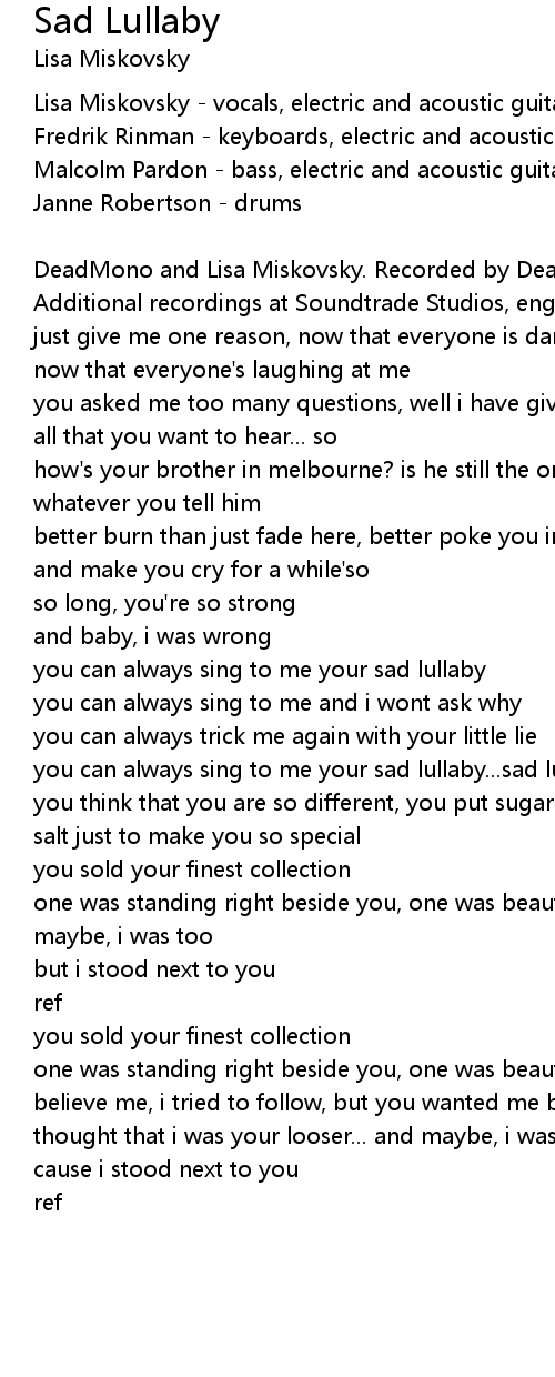 Lisa Miskovsky - vocals, electric and acoustic guitar |