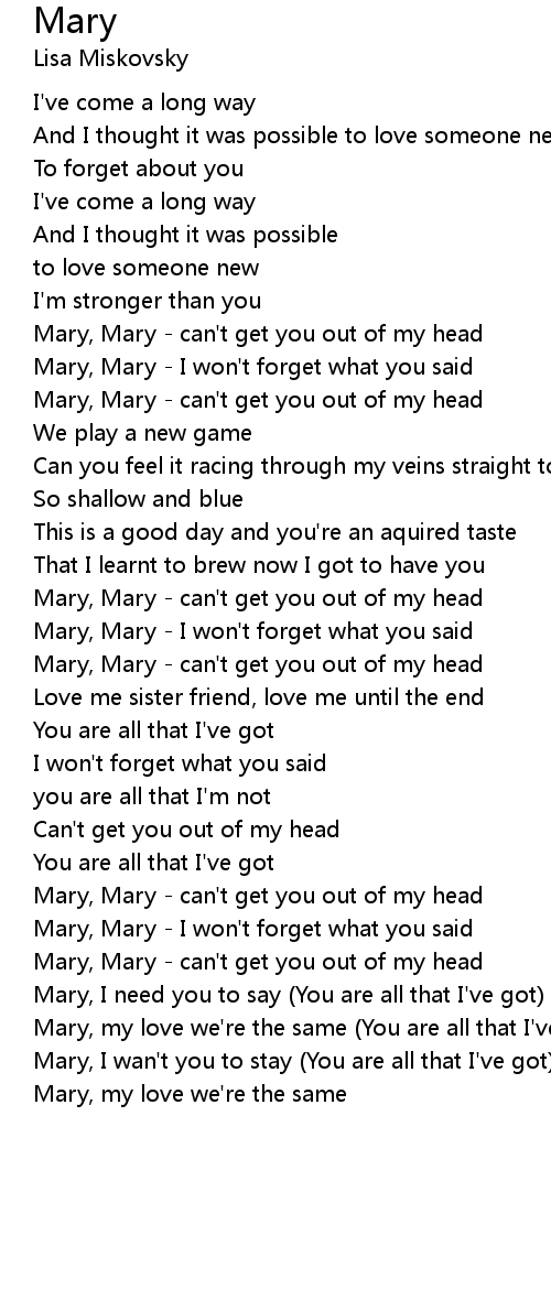 Mary, Mary - can't get you out of my head |