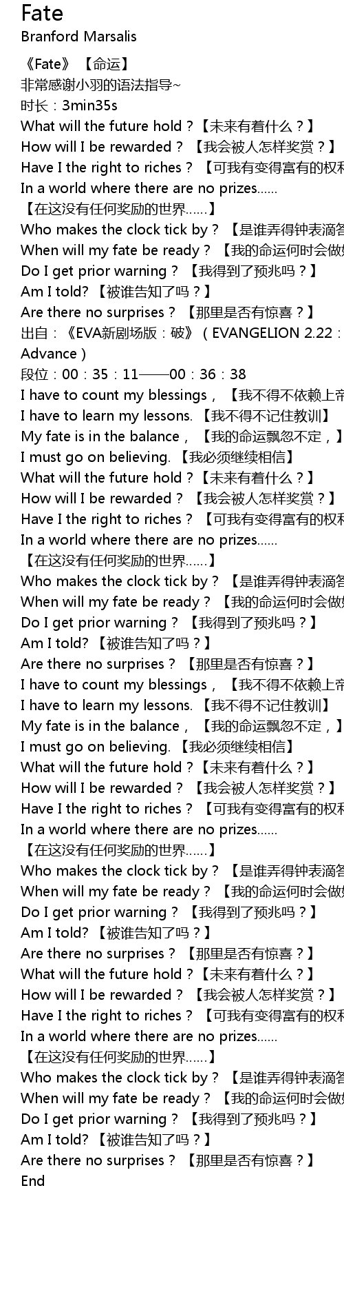 | When will my fate be ready? 【我的命运何时会做好准备?】 | |