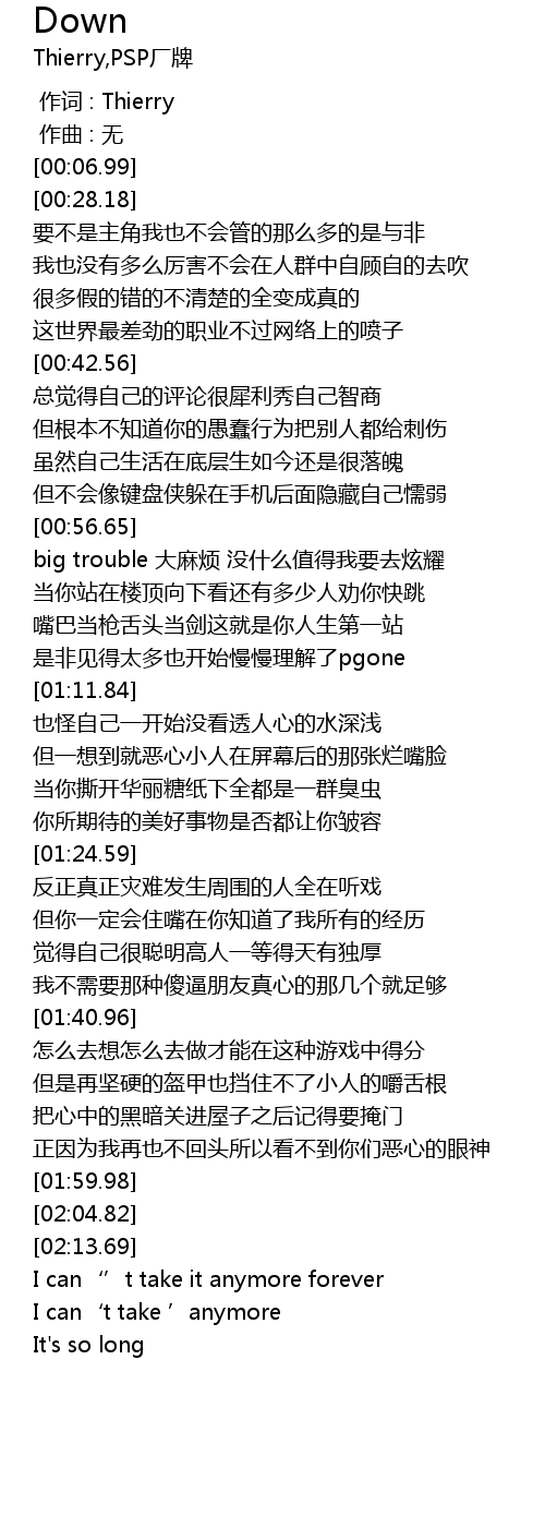 Down 歌词
