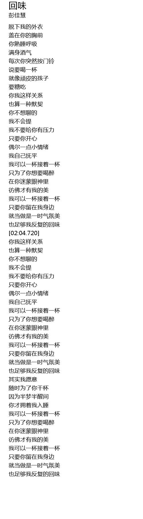 | [03:35.320] | yě zú gòu wǒ fǎn fù de huí wèi |