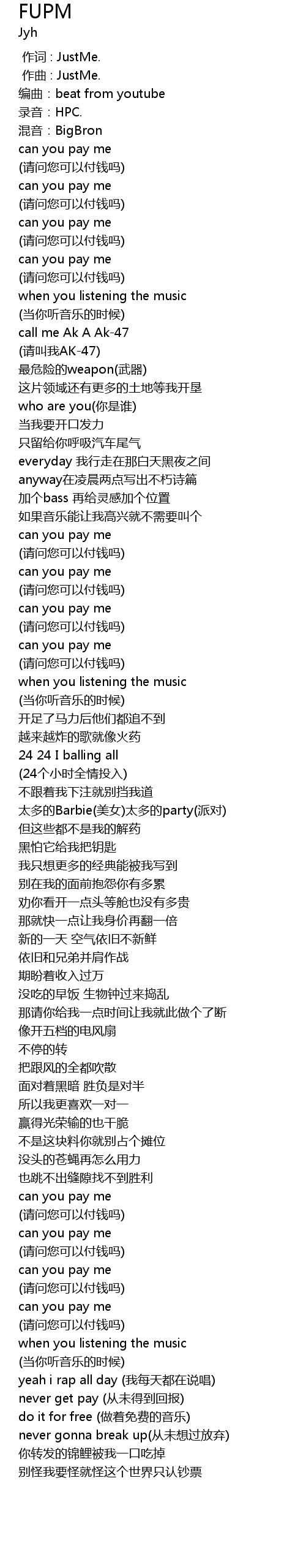 | [02:29.938] | yeah i rap all day wo mei tian du zai shuo chang |