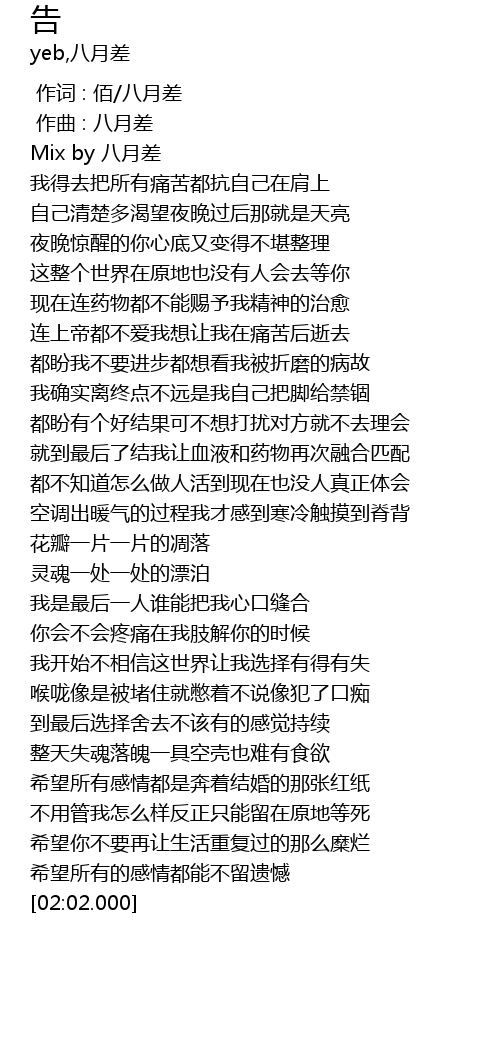 | [00:00.000] | 作词 : 佰/八月差 |
