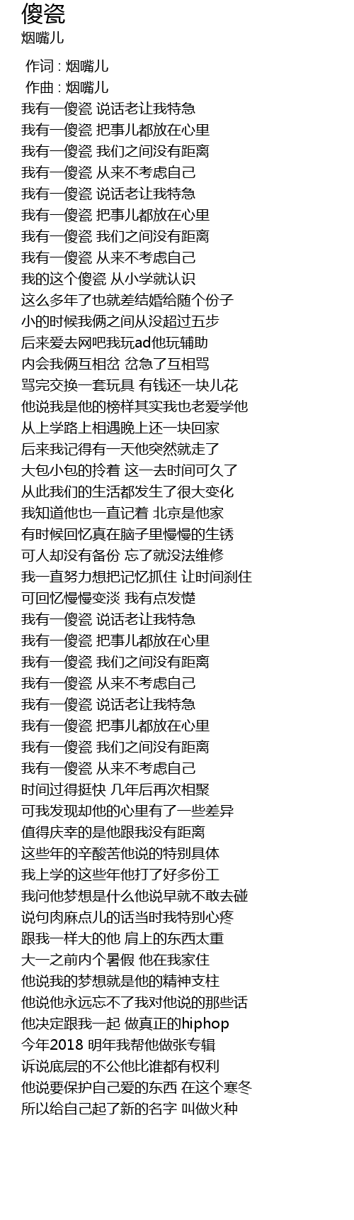 | [00:00.000] | 作词 : 烟嘴儿 |