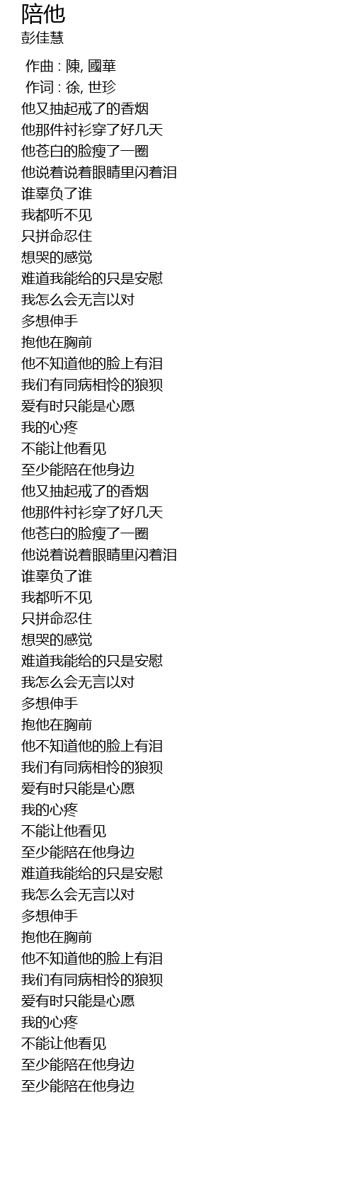 | [01:41.65] | zhì shǎo néng péi zài tā shēn biān |
