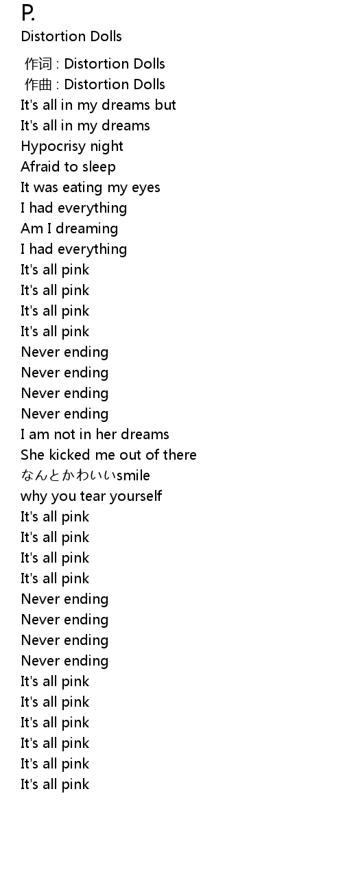| [00:01.000] | zuò qǔ : Distortion Dolls |