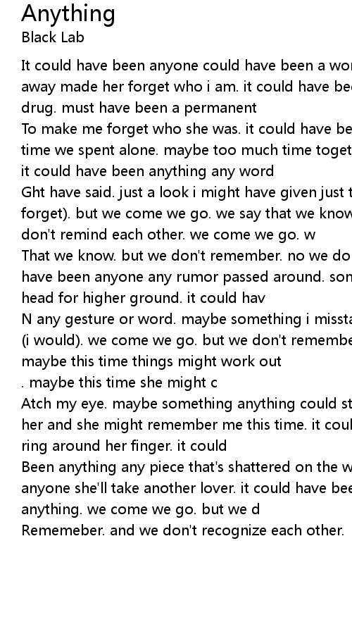 Been anything any piece that's shattered on the way. it could have been anything anyone she'll take another lover. it could have been anything anything anything anything. we come we go. but we d