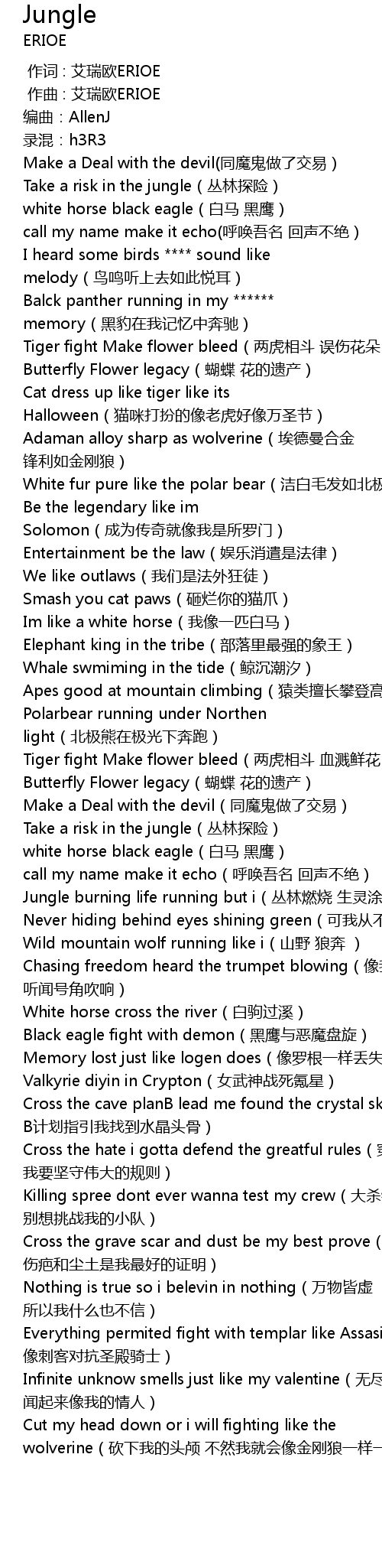 | [00:25.685] | Take a risk in the jungle cóng lín tàn xiǎn |