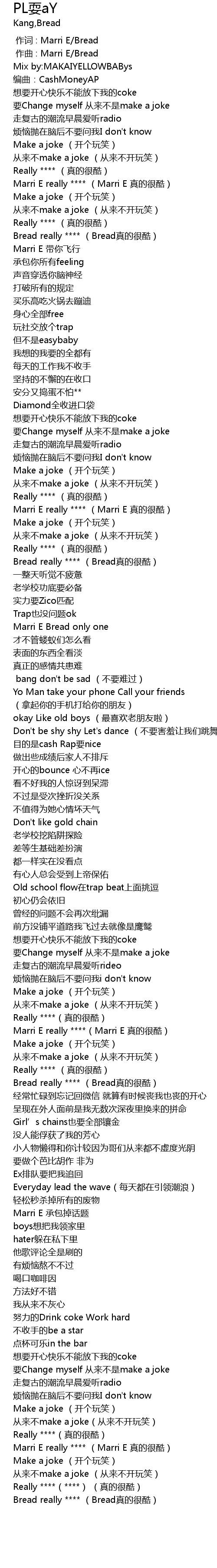 | [01:23.00] | Bread really **** (Bread真的很酷) |