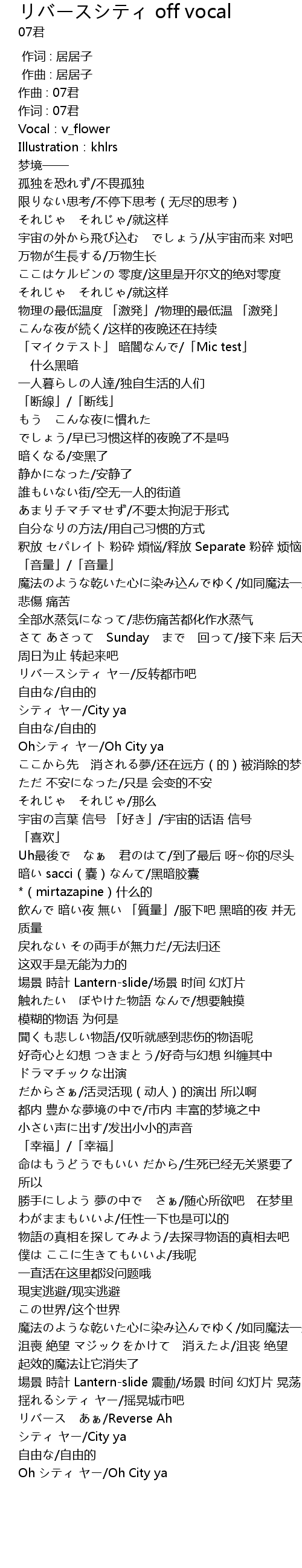 | [01:25.58] | リバースシティ ヤー/反转都市吧 |