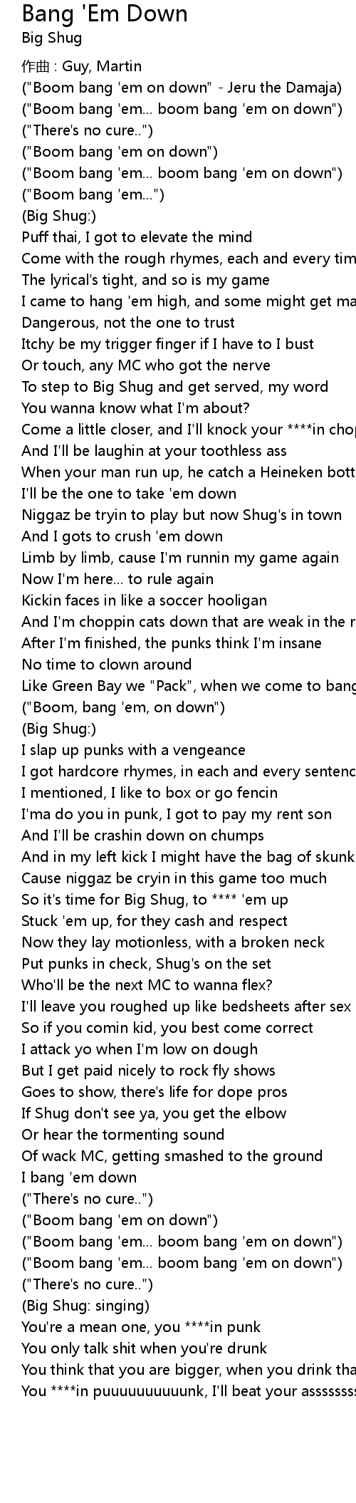 | 歌曲 | Bang 'Em Down |