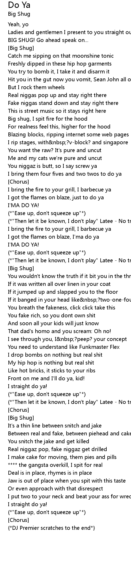 Big shug, I spit fire for the hood |