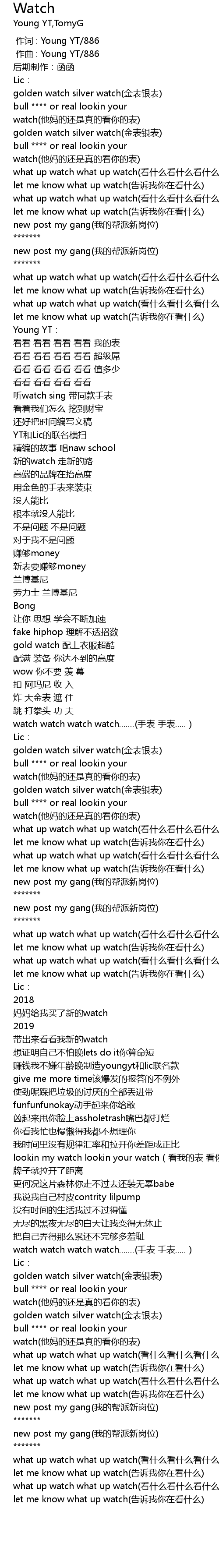 | [02:10.080] | what up watch what up watch(看什么看什么看什么看) |