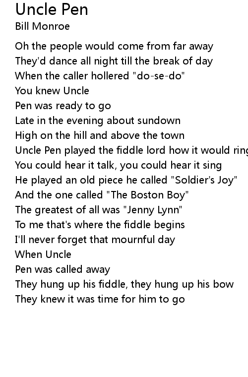 Uncle Pen played the fiddle lord how it would ring |
