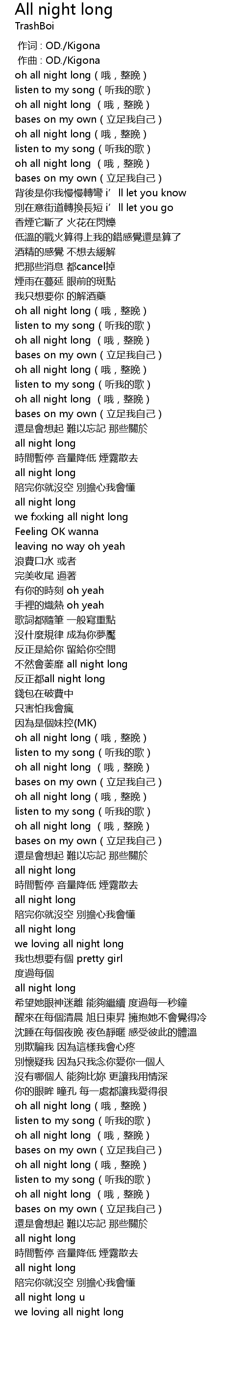 | [01:13.428] | oh all night long ó, zhěng wǎn |