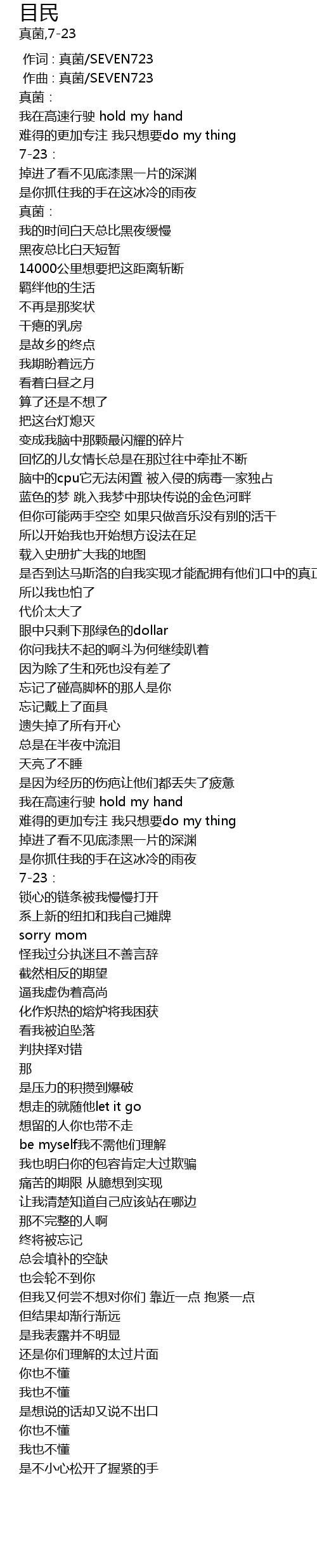| [00:01.000] | zuo qu : zhen jun SEVEN723 |