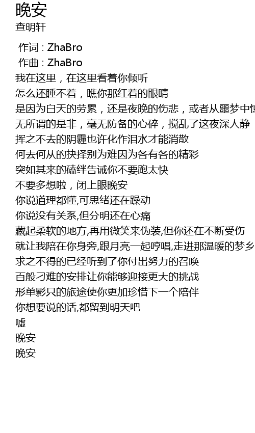 | [00:00.000] | 作词 : ZhaBro |