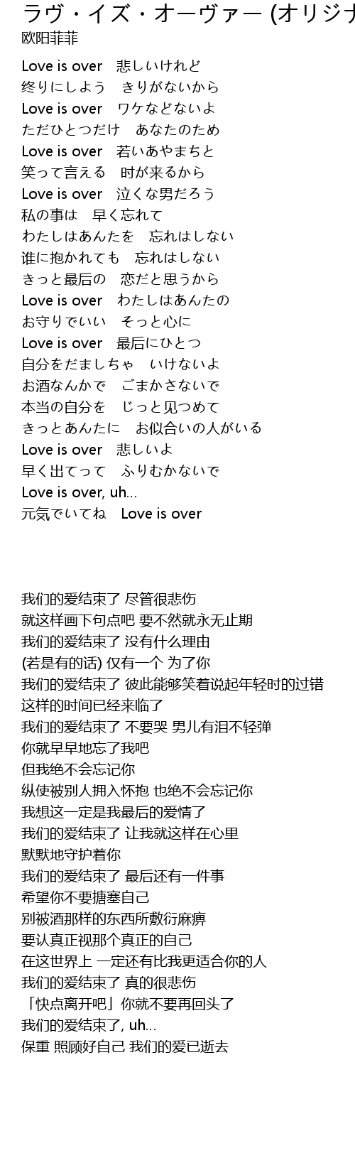 | 歌曲 | ラヴ・イズ・オーヴァー (オリジナル・ヴァージョン) |