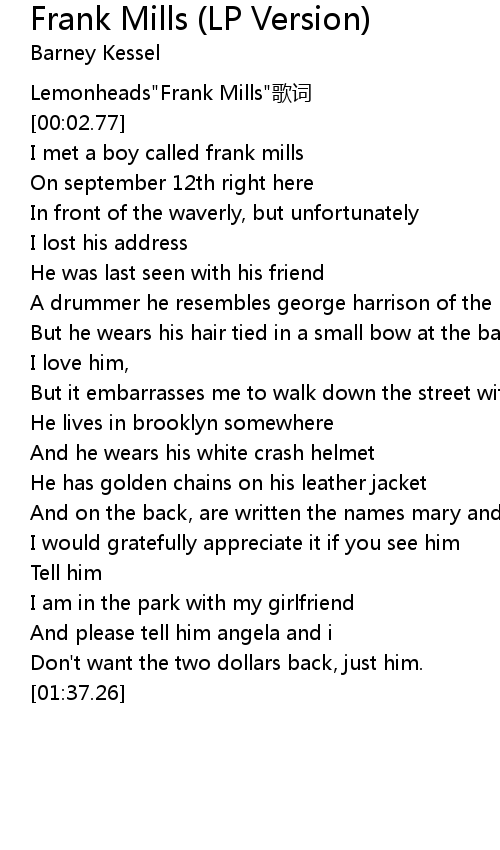 | [00:01.48] | Lemonheads" Frank Mills" gē cí |