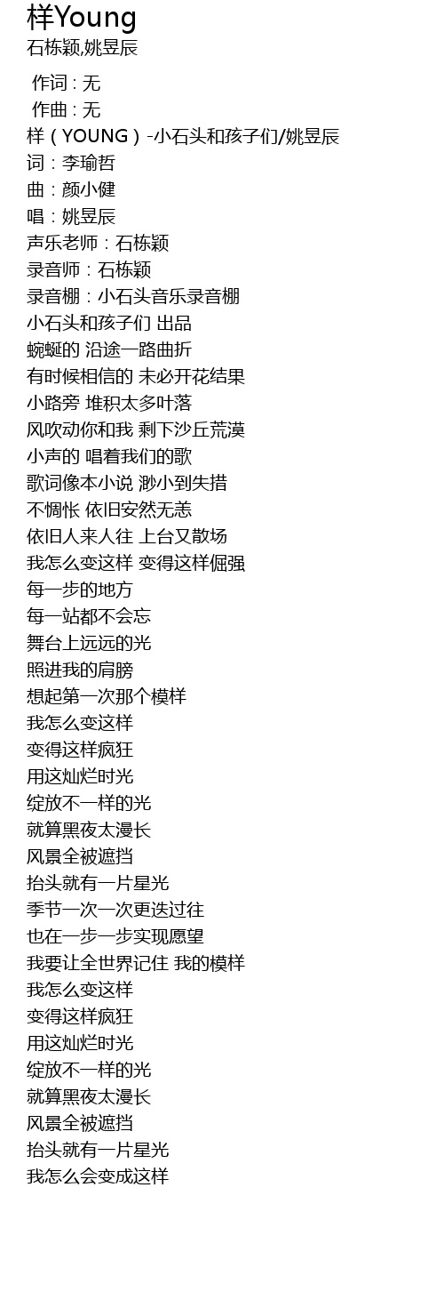 | [00:00.873] | 样(YOUNG)-小石头和孩子们/姚昱辰 |
