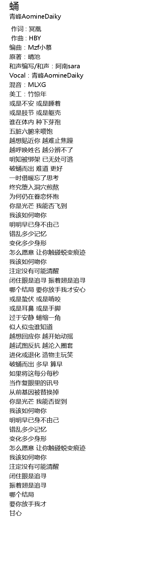 | [01:01.60] | 破蛹而出 难道 更好 |