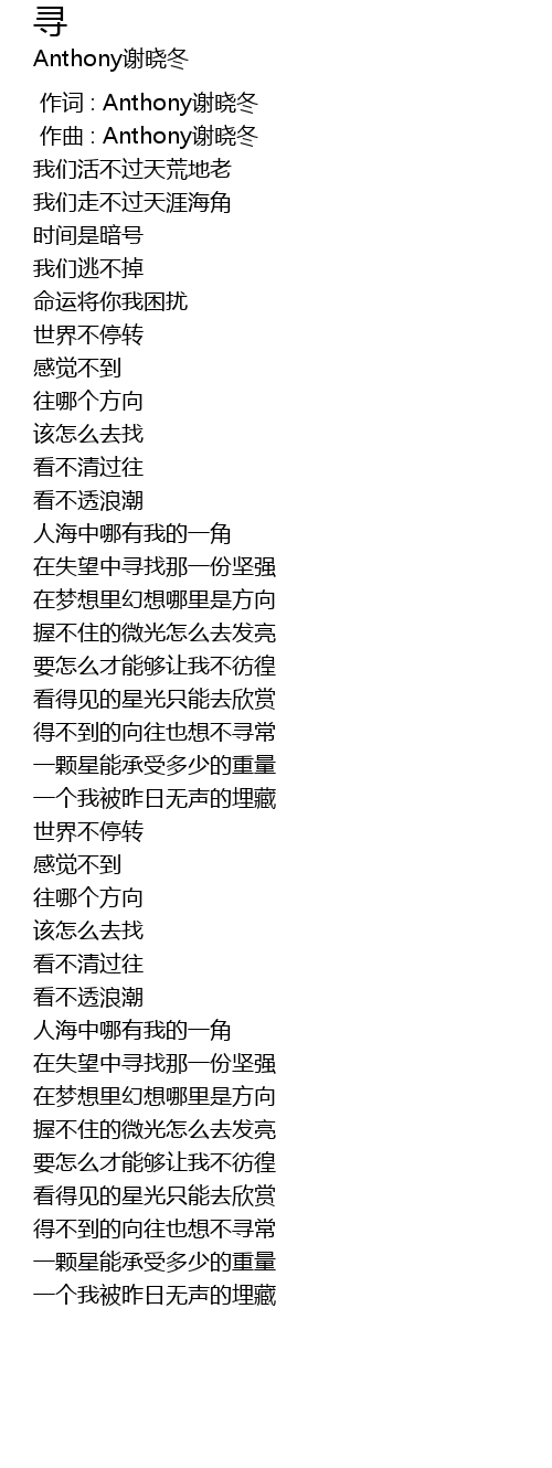 | [00:00.000] | 作词 : Anthony谢晓冬 |