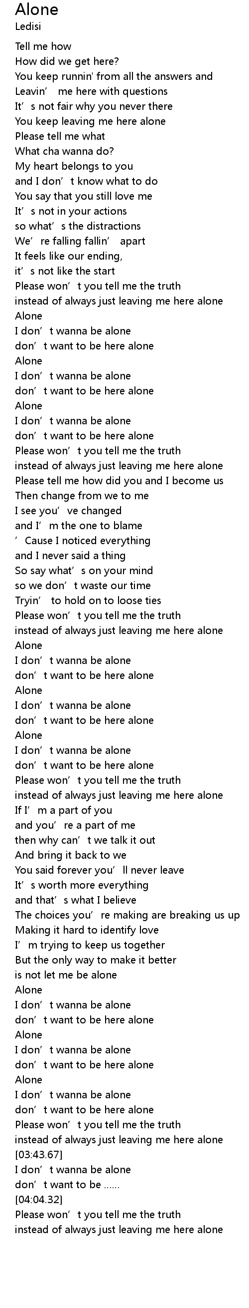 | [03:58.64] | I don' t wanna be alone |