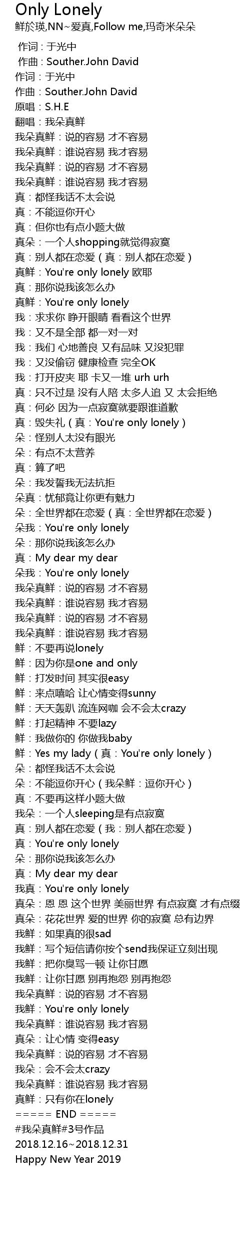 | [00:53.194] | 真鲜:You're only lonely 欧耶 |