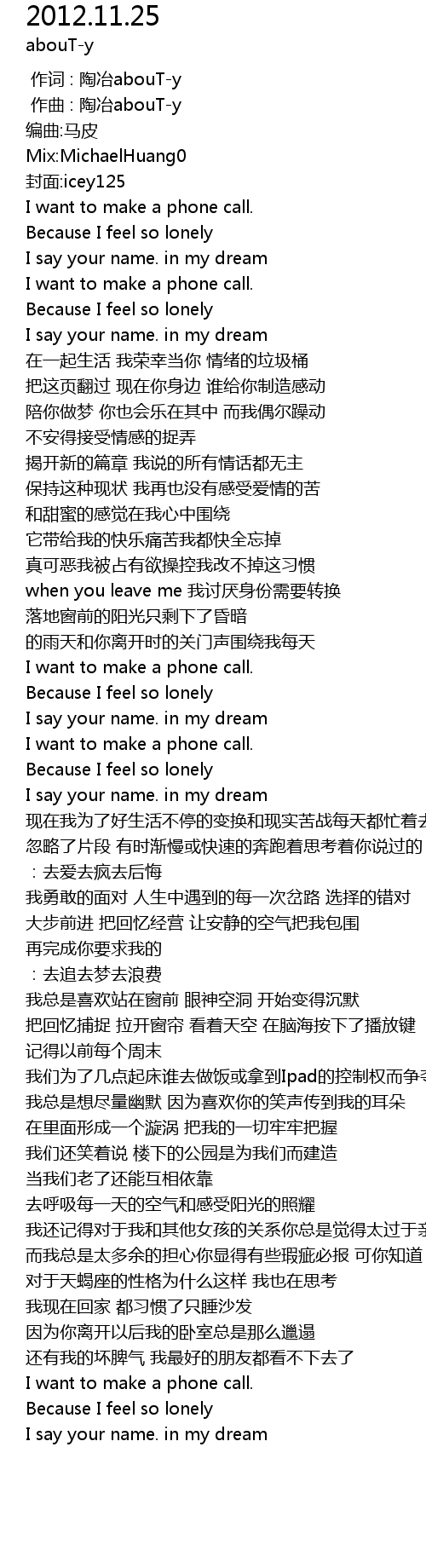 | [00:01.000] | 作曲 : 陶冶abouT-y |