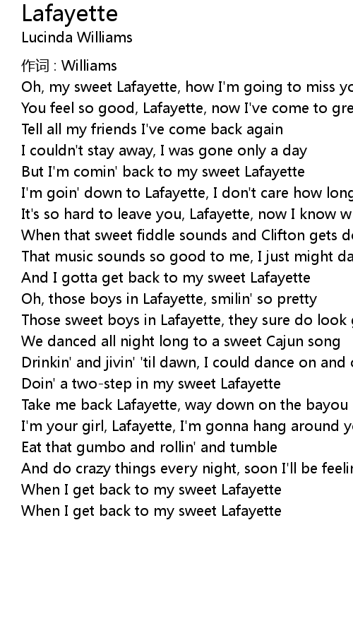 | It' s so hard to leave you, Lafayette, now I know where I belong | |